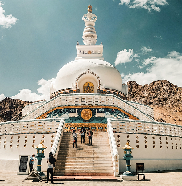 Si prosegue con la visita di Shanti Stupa che sorge su una collina che domina Leh, offrendo viste panoramiche e un luogo sereno per la riflessione.